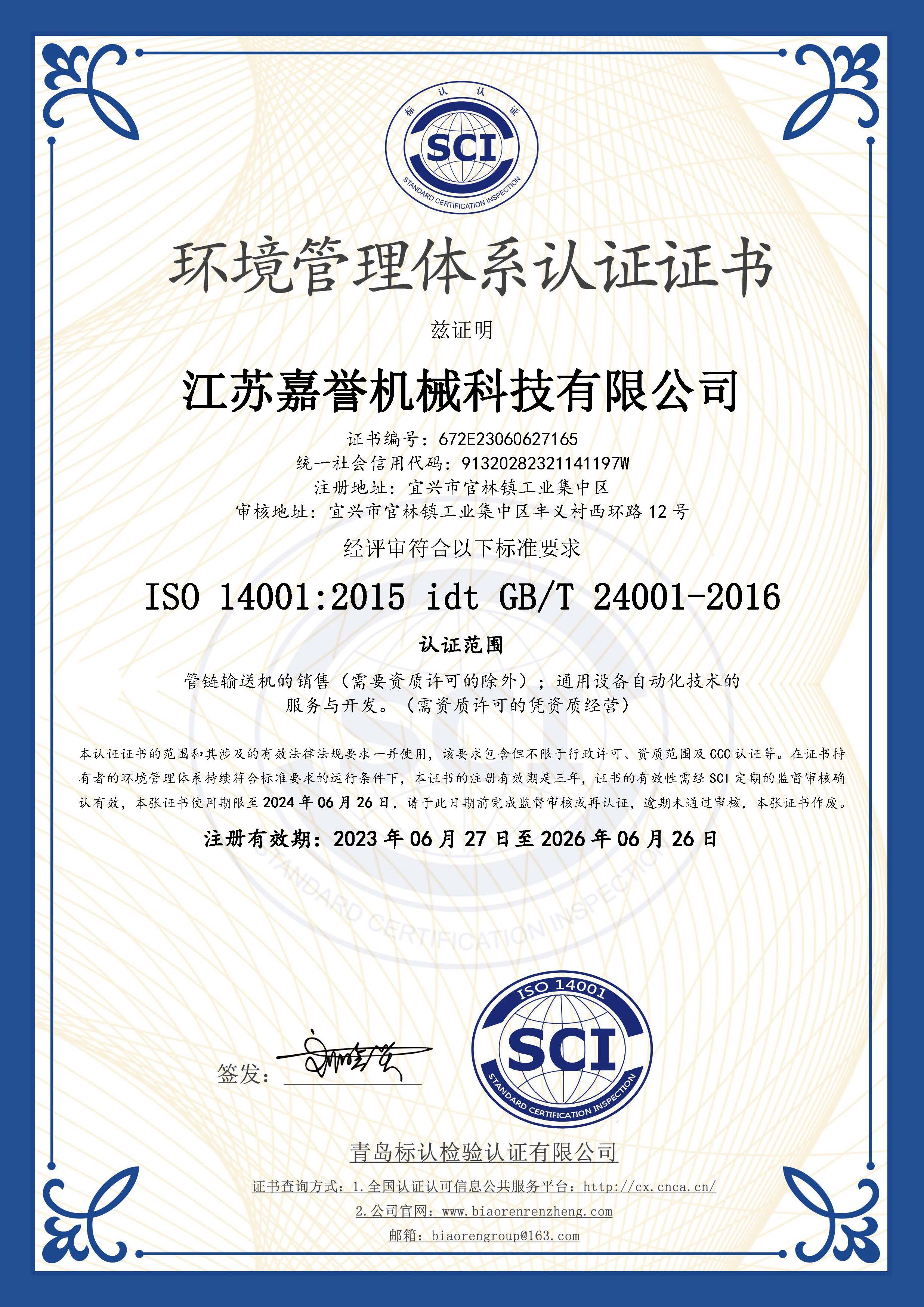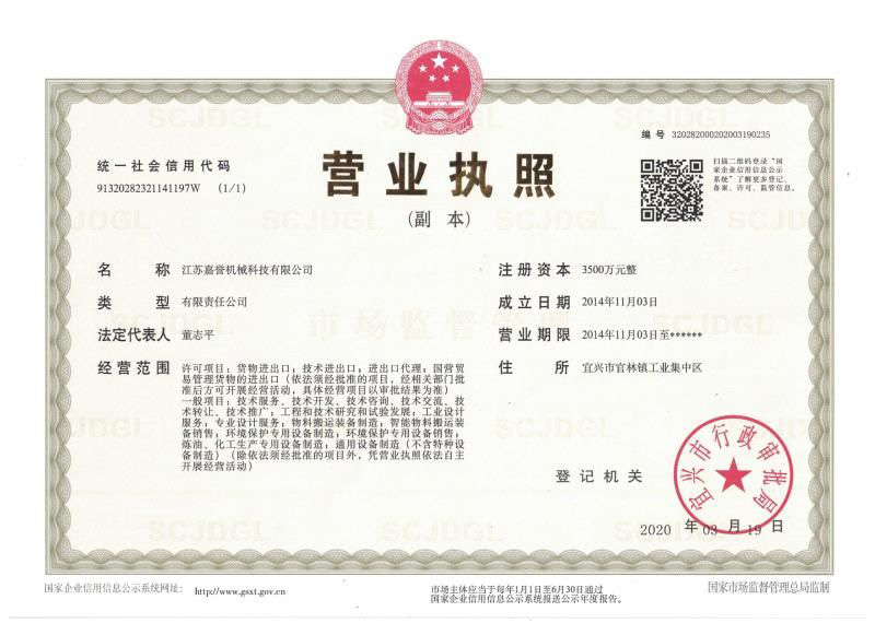 江蘇嘉譽(yù)機(jī)械科技有限公司座落在富有陶的故鄉(xiāng)、洞的世界、竹的海洋、茶的綠洲、教授之鄉(xiāng)以及全國電纜之鄉(xiāng)的歷史文化名城—宜興市官林鎮(zhèn)。本公司處于滬、寧、杭三角中心,與浙、皖交界,臨靠104國道、滬寧鐵路、寧杭高速,地理位置優(yōu)越,交通運輸方便。